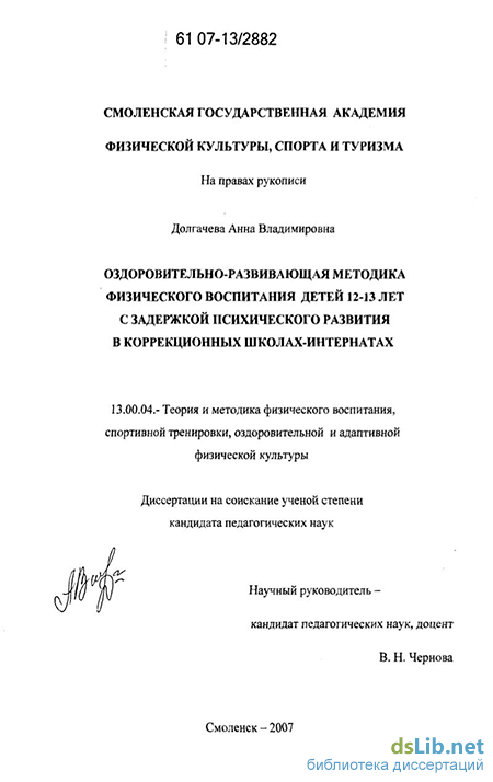 Актуальность исследования. Существующие методы воспитания и обучения детей в коррекционных школах-интернатах на современном этапе не в полной мере отвечают требованиям, что влечет за собой недостатки физического и психического развития личности (В М Астапов, 1993, В А Ананьев, 2002, Л М Беженцева, 2001) Тем самым ограничиаются возможности социальной адаптации детей с задержкой психического развития (ЗПР) Наличие различных видов депривации не позволяет своевременно сформировать у детей с ЗПР навыка здорового образа жизни, что еще больше усугубляет их низкое физическое развитие