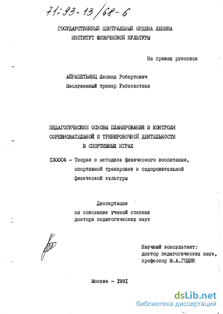 тивным играм, К 1991 году подготовлено уже шесть докторских диссертаций либо полностью посвященных проблематике спортивных игр, либо формулирующих основные положения деятельности спортсмена или механизма формирования его подготовленности на материале спортивных игр (45, 90, 191, 196, 208, 216, 227).