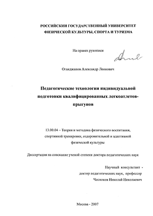 Разработаны и экспериментально обоснованы педагогические технологии индивидуализации технической и специальной физической подготовки квалифицированных легкоатлетов-прыгунов
