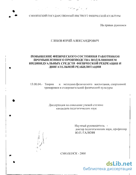 Предмет исследования - методика индивидуальных самостоятельных занятий в виде физической рекреации и двигательной реабилитации трудящихся во внерабочее время.