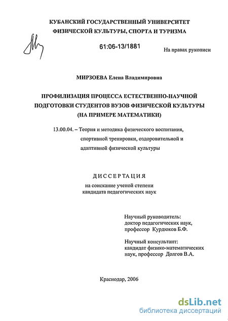 - Обоснование профилизации структурно-содержательного по строения математической подготовки студентов вузов физической культуры