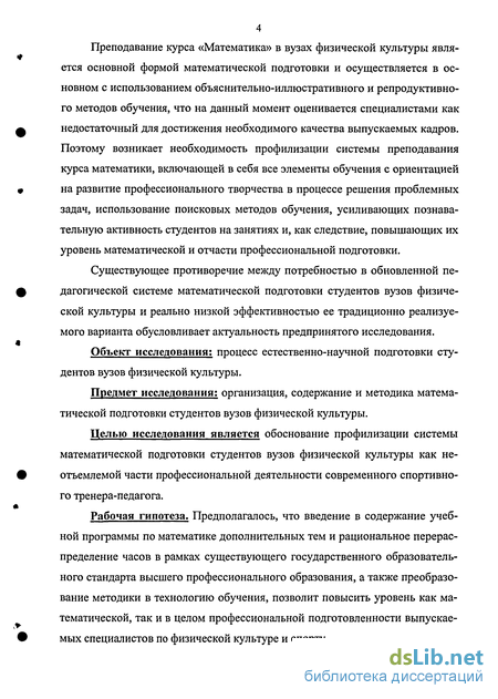 Предмет исследования: организация, содержание и методика математической подготовки студентов вузов физической культуры.