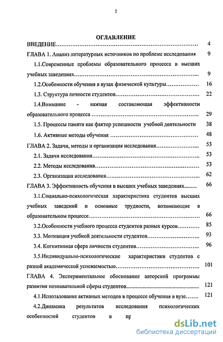 ГЛАВА 4. Экспериментальное обоснование авторской программы развития познавательной сферы студентов 121