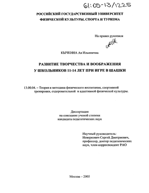 - Экспериментальное изучение шашечной игры как средства формирования творческих способностей и воображения школьников