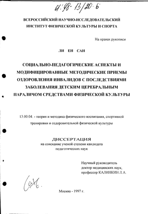 Основой для выбора объекта и предмета исследования, его цели и задач послужило отсутствие научно-обоснованных знаний об эффективной методике, заложенной в физической культуре и спорте с целью активно-оздоровительной реабилитации и социально-педагогической интеграции инвалидов с нарушениями функций опорно-двигательного аппарата, в том числе вследствие ДЦП.