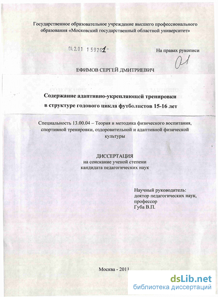 Апробация работы. Основные положения диссертации докладывались и получили одобрение на научных конференциях в 2007-2010 гг. (г. Москвы и Московской области, г. Минска, г. Смоленска). Результаты исследования внедрены в учебно-тренировочный процесс футболистов ЦПФ «Динамо» им. Л. Яшина; СДЮШОР «ЦСКА»; НОУ ЦСО «Локомотив» – 2» г. Москвы.