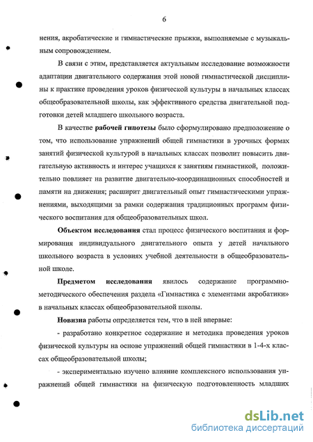 Предметом исследования явилось содержание программно-методического обеспечения раздела «Гимнастика с элементами акробатики» в начальных классах общеобразовательной школы.