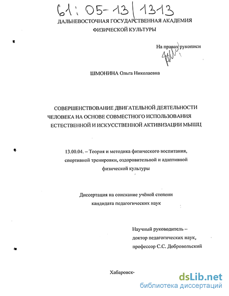Предмет исследования: средства и методы активизации двигательных действий человека.