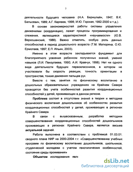 Вместе с тем, занятия по физическому воспитанию в дошкольных образовательных учреждениях на Крайнем Севере проводятся без учета особенностей развития координационных способностей у детей, проживающих в данном регионе.