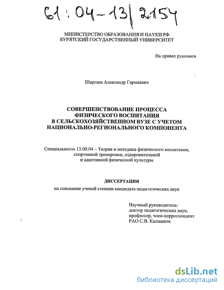 Объектом исследования является процесс физического воспитания студентов сельскохозяйственного вуза.