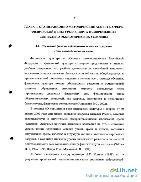 1.1. Состояние физической подготовленности студентов сельскохозяйственных вузов 9