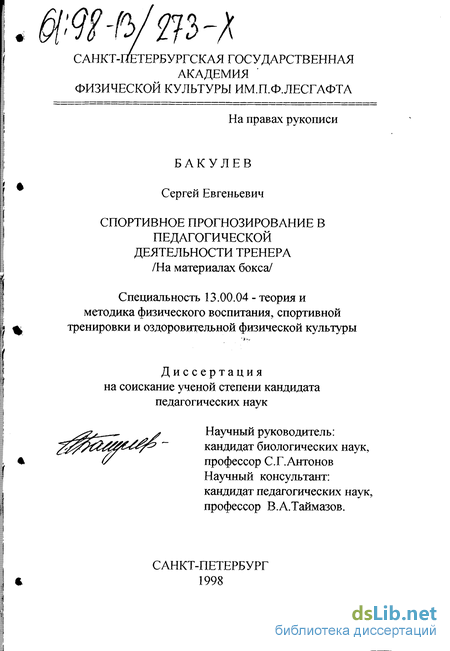 в боксе. Диссертация состоит из 157 стр. машинописного текста, включает введение, четыре главы, выводы, библиография, приложения.