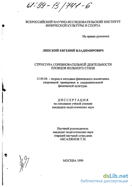5.3. Совершенствование соревновательной деятельности пловцов на основе структурного анализа 71