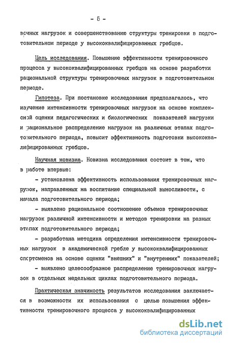 Научная новизна. Новизна исследования состоит в том, что в работе впервые: установлена эффективность использования тренировочных наг-рупок, направленных на воспитание специальной выносливости, с начала подготовительного периода; выявлено рациональное соотношение объемов тренировочных нагрузок различной интенсивности и методов тренировки на разных этапах подготовительного периода; разработана методика определения интенсивности тренировочных нагрузок в академической гребле у высококвалифицированных спсртсменов на основе оценки "внешних" и "внутренних" показателей; выявлено целесообразное распределение тренировочных нагрузок в отдельных недельных циклах подготовительного периода.
