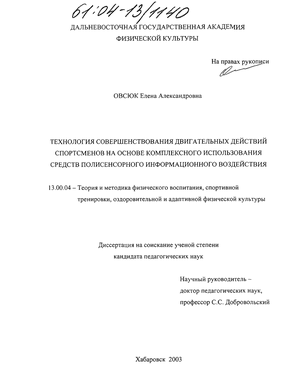 Предмет исследования: средства и методы, формирующие двигательные действия с заданными свойствами.