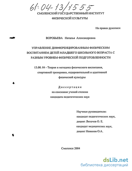 ГЛАВА 4. Обоснование процесса дифференцированного физического воспитания детей младшего школьного возраста 61