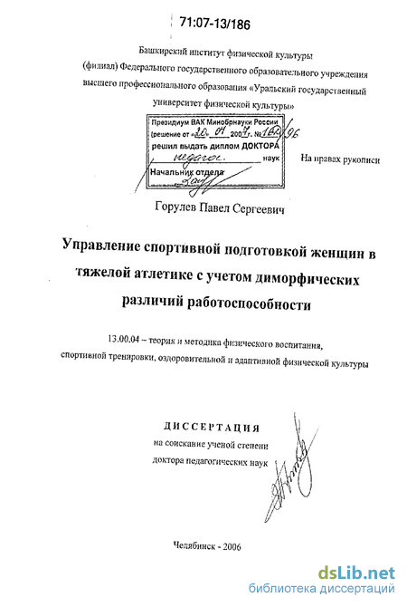 спортивно-педагогического профиля. Имеющийся в диссертации фактический