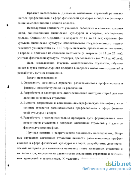 Цель исследования. Изучить компетентность студентов, обучающихся в вузах физкультурного профиля в вопросах жизненных стратегий и разработать пути ее повышения.