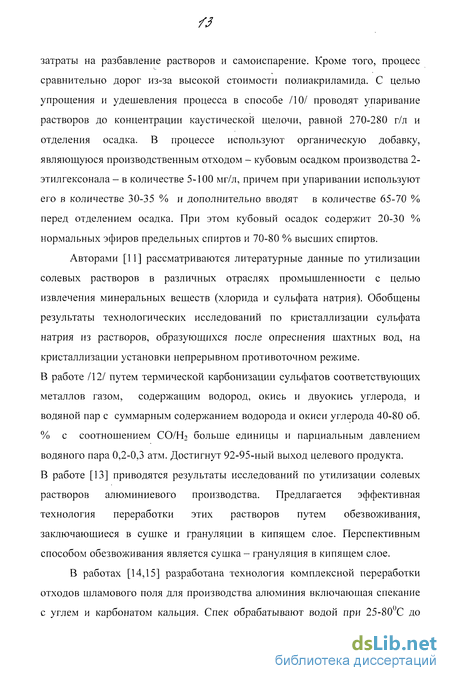 В литературном обзоре рассмотрен также вопрос десульфатизация жидких отходов алюминиевого производства, а также переработка твердых отходов шламового поля с получением криолит-глиноземного концентрата.