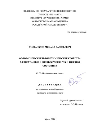 - Спектрально-люминесцентное исследование анионных форм 5-фторурацила и тегафура