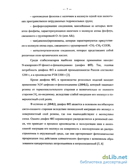 По данным работы [9] после 20 тыс. километров пробега автомобильная шина в результате миграции теряет до 60% диафена ФП, что обуславливает возникновение экологических проблем при эксплуатации пневматических шин и РТИ, содержащих диафен ФП.