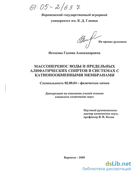 4. Массоперенос воды и спиртов через ионообменные мембраны
