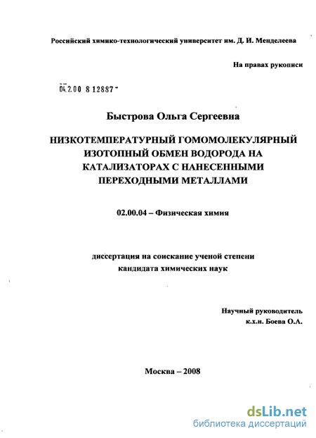 1.4. Гомомолекулярный изотопный обмен водорода на поверхности . 41