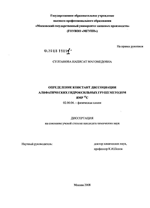 Султанова Написат Магомедовна. Определение констант диссоциации алифатических гидроксильных групп методом ЯМР13С : диссертация ... кандидата химических наук : 02.00.04 / Султанова Написат Магомедовна; [Место защиты: Ин-т общ. и неорган. химии им. Н.С. Курнакова РАН]. - Москва, 2008. - 128 с. : ил. РГБ ОД, 61:08-2/98