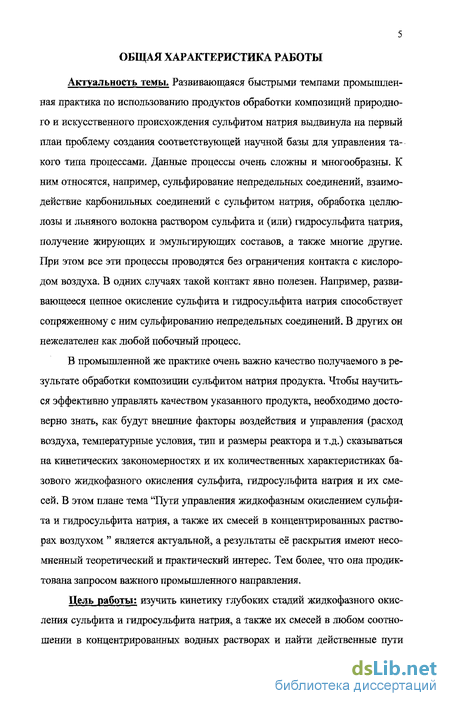 В промышленной же практике очень важно качество получаемого в результате обработки композиции сульфитом натрия продукта. Чтобы научиться эффективно управлять качеством указанного продукта, необходимо достоверно знать, как будут внешние факторы воздействия и управления (расход воздуха, температурные условия, тип и размеры реактора и т.д.) сказываться на кинетических закономерностях и их количественных характеристиках базового жидкофазного окисления сульфита, гидросульфита натрия и их смесей. В этом плане тема "Пути управления жидкофазным окислением сульфита и гидросульфита натрия, а также их смесей в концентрированных растворах воздухом " является актуальной, а результаты её раскрытия имеют несомненный теоретический и практический интерес. Тем более, что она продиктована запросом важного промышленного направления.