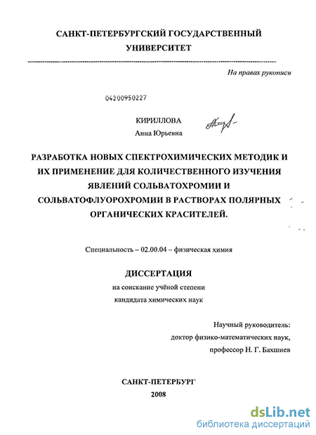 В связи с этим приобретает особую актуальность задача, связанная с разработкой оптимальной методологии использования указанной теории для количественного анализа больших массивов сольватохромных и сольватофлуорохромных данных, относящихся к растворам полярных органических красителей в индивидуальных и бинарных растворителях разной химической природы В результате решения такой задачи должны быть получены достаточно простые и удобные для практики рабочие соотношения, служащие для нахождения из опыта совокупности электрических, оптических и структурных характеристик молекул и комплексов исследуемых красителей в возбужденных электронных состояниях, что, в свою очередь, позволит реализовать познавательные (в том числе предсказательные) возможности теории, а также применить ее для решения прикладных вопросов. Важнейшим из таких вопросов служит перспектива использования результатов настоящей работы для установления молекулярных механизмов функционирования флуоресцентных зондов, находящих все более широкие применения в медико-биологических исследованиях (НИИ физико-химической медицины, Москва)