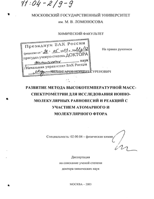 - Исследование ионно-молекулярных равновесий в высокотемпературной масс-спектрометрии (метод ИМР)