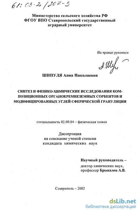 В соответствии с этим, актуальным представляется проведение системных исследований по синтезу композиционных органокремнеземных материалов и модифицированных сорбентов на основе активированных углей сферической грануляции с изучением их физико-химических свойств, направленности биохимического действия.