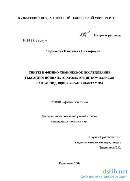 Для получения полифункциональных материалов интерес представляют гекса(изотиоцианато)хроматы(III) комплексов лантаноидов(III) с -капролактамом. Инертный объемный гекса(изотиоцианато)хромат(III)-анион способен из системы лабильных комплексов в растворе выделить в осадок соединения металлов, амбидентатность тиоцианатной группы предполагает разнообразие структурных типов тиоцианатов.