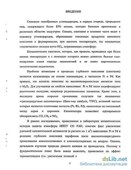 Вопрос о том, какое состояние нанесенных Pt и Pd - окисленное или близкое к металлическому - является более активным в реакции окисления углеводородов широко дискутируется в литературе. Так, Балдвин и Берч [59] исследовали влияние окисленного и восстановленного состояния палладия на каталитическую активность, проведя эксперименты по окислению метана кислородом воздуха (1% СРЦ в воздухе) в импульсном режиме. При этом, для алюмопалладиевых катализаторов авторы обнаружили, что окисленная форма является более активной в данной реакции, в то время, как восстановленный палладий первоначально имел низкую активность, но с увеличением числа импульсов поданной реакционной смеси, активность постепенно возрастала. Авторы связывают данный факт с возрастающим кислородным покрытием поверхности Pd, т.е. с медленным окислением палладиевых кристаллитов, при увеличении числа импульсов. В то же время, для образцов Pd/SiC 2, восстановленная форма катализатора оказалась намного активней, чем окисленная.