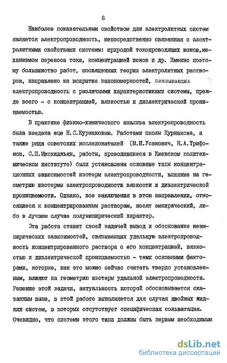 В практике физико-химического анализа электропроводность была введена еще Н.С.Курнаковым. Работами юколы Курнакова, а также ряда советских исследователей (М.ЇЇ.Усанович, Н.А.Трифонов, С.П.Мисквдкьян, работы, проводившиеся в Киевском политехническом институте) были установлены основные типы концентрационных зависимостей изотерм электропроводности, влияние на геометрию изотермы электропроводности вязкости и диэлектрической проницаемости. Однако, все заключения в этом направлении, относящиеся к концентрированным растворам, носят эмпирический, либо в лучшем случае полу эмпирический характер.