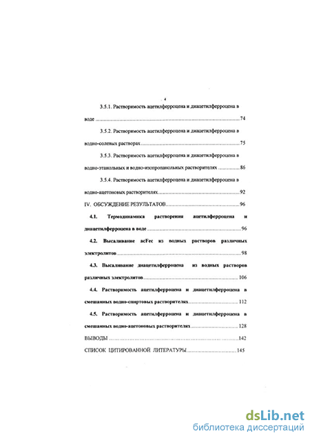 4.1. Термодинамика растворения ацетилферроцена и диацетилферроцена в воде 96