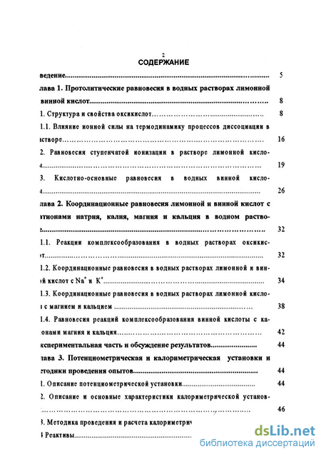 Потенциометрическое исследование протолитических и ко рдинационных равновесий в водных растворах лимонной и винной ислот с ионами Na+, К+, Mg2+ и Са2+ 54
