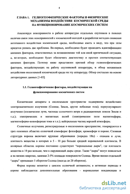 Глава 1. Гелиогеофизические факторы и фи зические механизмы воздействия космической среды на функциони рование космических систем 8