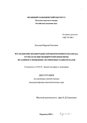 Со времени запуска ИСЗ спутниковое радиопросвечивание стало одним из самых распространенных дистанционных методов исследований ионосферы. Существуют разные схемы радиопросвечивания, в которых спутниковые сигналы, излучаемые на одной или нескольких частотах, измеряются на одном или нескольких приемниках, расположенных на поверхности Земли или размещенных на спутниках. В целом по результатам многочисленных наблюдений обнаружены мерцания в диапазоне частот от 10 МГЦ до бГГц /1/. Масштаб ионосферных неоднородностей, которыми обусловливается эффект мерцаний, меняется от нескольких метров до десятков километров. Исследование высокоширотных ионосферных неоднородностей с размерами от нескольких сотен метров до первых километров является важной частью общей физической проблемы изучения структуры ионосферы. Неоднородности такого масштаба оказывают влияние на распространение УКВ диапазона, что, с одной стороны, определяет значимость их исследования, а с другой -указывает способы их изучения на основе радиофизических методов.