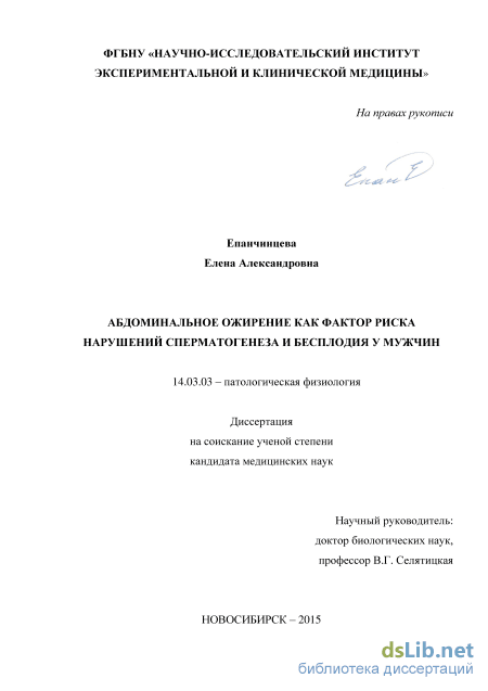 Цель диссертационного исследования: изучить связь абдоминального ожирения с нарушениями процессов сперматогенеза, медико-социальными факторами риска и гормональными механизмами патогенеза бесплодия у инфертильных мужчин.