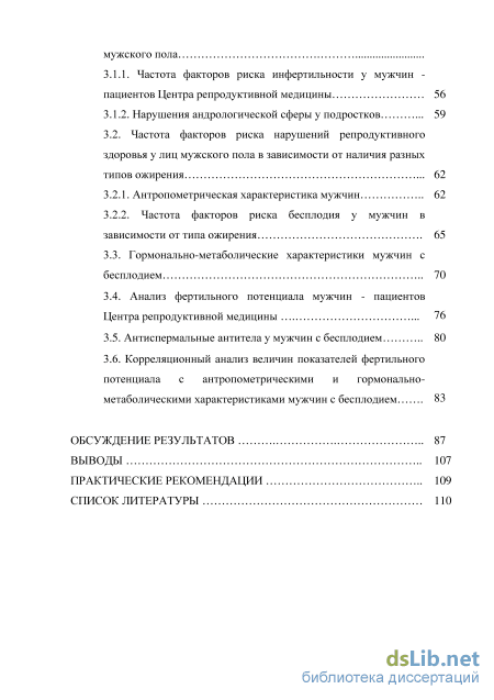 1.4.2. Ожирение и бесплодие у мужчин 36