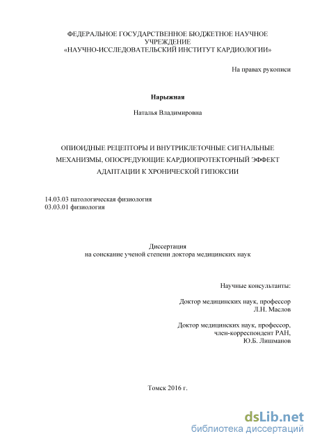 - Изучение роли сопряженных с опиоидными рецепторами сигнальных систем в реализации кардиопротекторного действия хронической нормобарической гипоксии