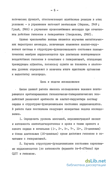 Однако чрезвычайно важным является изучение метаболических перестроек миокарда, включающих изменения лактат-пиру-ватной системы и структурно-функционального состояния плазматических мембран кардиомиоцитов при длительно повторяющихся воздействиях гипоксии в сочетании с гиперкапнией, обладающих тренирующим эффектом, поскольку сдвиги на тканевом и клеточном уровнях определяют в конечном итоге адаптацию организма к недостатку кислорода.