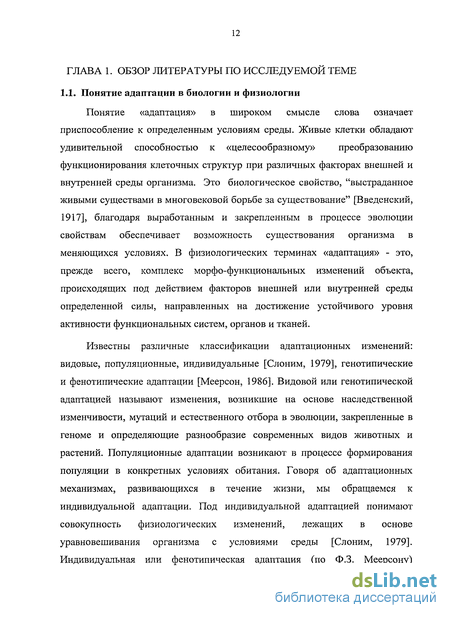 1.1. Понятие адаптации в биологии и физиологии 12