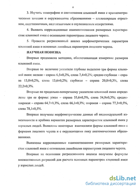 Впервые на основании регрессионного анализа получены формулы множественных регрессий для расчета основных параметров клыковои ямки у взрослых людей.