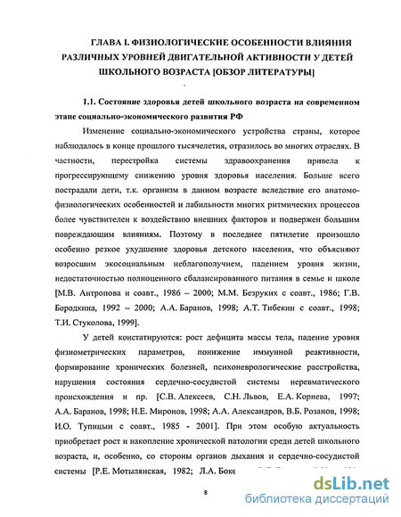 ГЛАВА I. Физиологические особенности влияния различных уровней двигательной активности у детей школьного возраста (Обзор литературы) 8