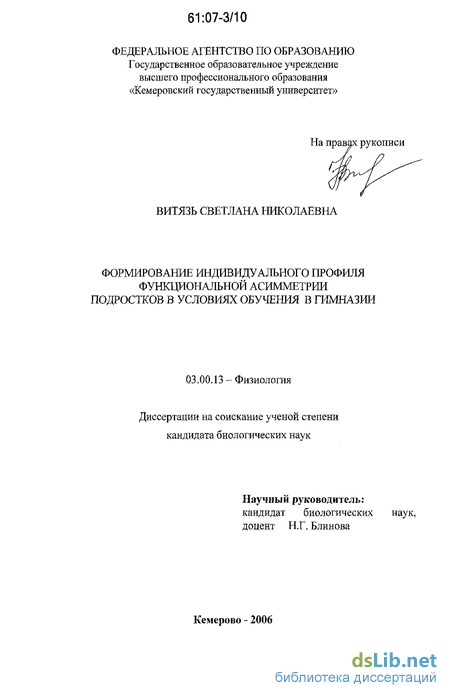 3.1.3 .Формирование индивидуального профиля асимметрии 72