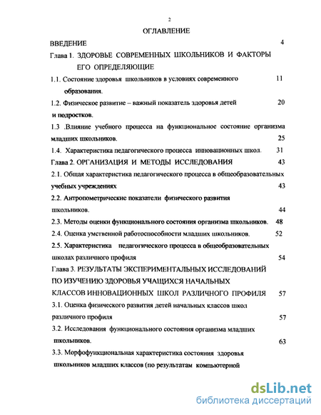 3.2. Исследования функционального состояния организма младших школьников. 63