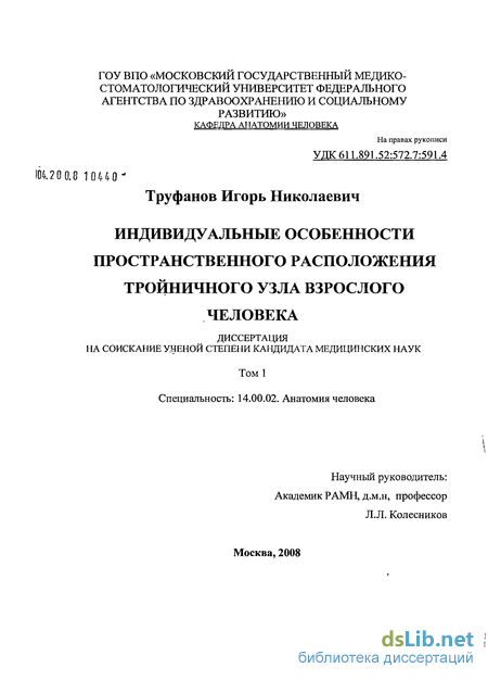 1.4. Индивидуальные различия величины, формы и положения внутричерепной части тройничного нерва человека 30 стр.