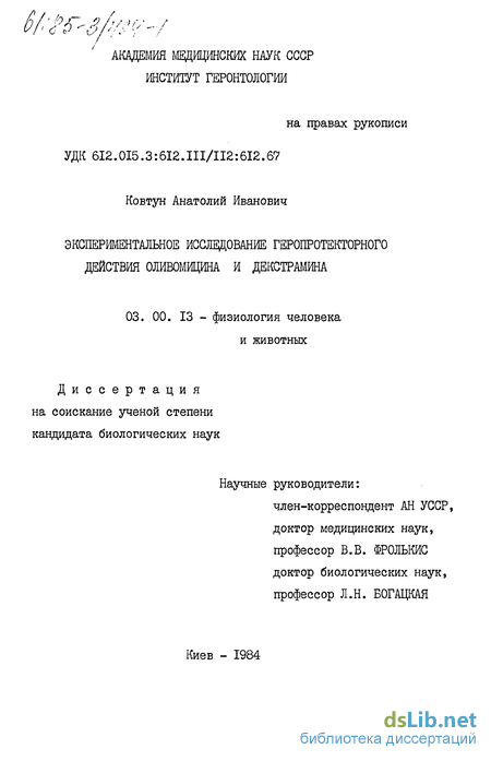 В соответствии с последними представлениями, первичные механизмы старения связаны с молекулярно-генетическими изменениями, нарушениями в генетическом аппарате клетки /Бердышев, 1968, 1982 ; Ващшин, Бердышев, 1977 ; Никитин, Бердышев, 1982 ; Cutler , 1976 ; Chetsanga et al. , 1977 ; Gaubatz et al, 1979/. Это обосновывает перспективность поиска эффективных геропротекторов среди ингибиторов биосинтеза белка /Фролькис и др.,1976, 1979,1980/.